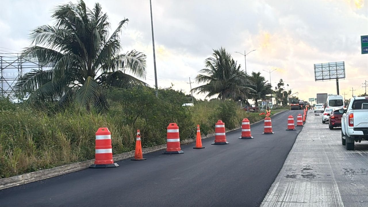 Se aplica una nueva carpeta asfáltica de tres centímetros de espesor en el subtramo del kilómetro 205+300 al kilómetro 206+300, cuerpo A, carril de baja velocidad, en el sentido Playa del Carmen-Cancún. Estos trabajos se realizarán en horario de 8:00 a.m. a 1:00 p.m.